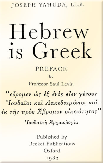 HEBREW IS GREEK (JOSEPH YAHUDA) BOOK |