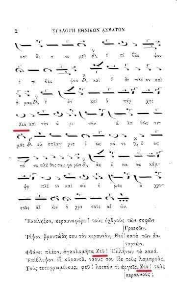 Το ΣΟΚ είναι αυτό : Είναι γραμμένο με βυζαντινή μουσική Παρασημαντική ! Δηλαδή , Ειναι η ίδια μουσική γλώσσα που ψάλλει εκκλησιαστικούς ύμνους ! . . . Χρησιμοποιείται για να ψαλθεί , η Επίκληση εις τον Θεον Δία ! - Ειναι Τυχαίο ;