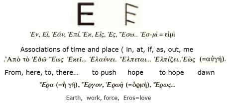![]() ![]() ![]() ΕΓΩ=EGO (ME- I) Ε=man Γ=draw a line around me Ω=placing my self in the center of the world The stone age Greek herdsman yelling to his animals Aaε!! Aaε!! = scaring voice, and calling Έλ, (El) Έλα - (Ela) = come, come, they name them selves, Έλλοπες (hellopeas), Έλλοψ, Σελλός (τΣέλιγκας), Ελ-λας (hEl-las) - Λας = bright man, Stone-carving technicians Έλληνες (Hellenes). Related words, Ελαύνης - ωθής (you push), «Ελελίζω» φοβίζω (I cause scare), (Ελάφι (reindeer) (=scared animal) = φοβισμένο ζώο). «ελλοχηστής» (ενέδρα) = ambushing), etc. |