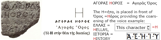 water, and letter I is representing fine, slim, narrow objects. According to Plato, letter H (etta) is considered as majestic, words Ήλιος = Helios (=sun), Ήρα (=Goddess Hera), Ηρακλής (=Hercules). In many ancient Greek dialects Η (etta) has replaced letters A and E (αμέρα to ημέρα (day), (ήβη to ήβα and άβα = adolescence), (ηχή to αχά (=sound of many voices). H (=etta) is also the feminine gender. (learn Greek) The reason that the Greeks created 3 different symbol characters that sound the same «H,I,Y» prove the originality of the alphabet, each of the three symbol sound the same, but have different meaning. In Homer we find the word: ΗΛΙΚΙΑ - HELIKIA (=someone's AGE) - (ΗΛΙ=SUN) + (KΥA=CIRCLES) = how many circles round the sun (Ancient Greeks knew that the earth is circulating the sun more than 5 thousand ears ago) |
