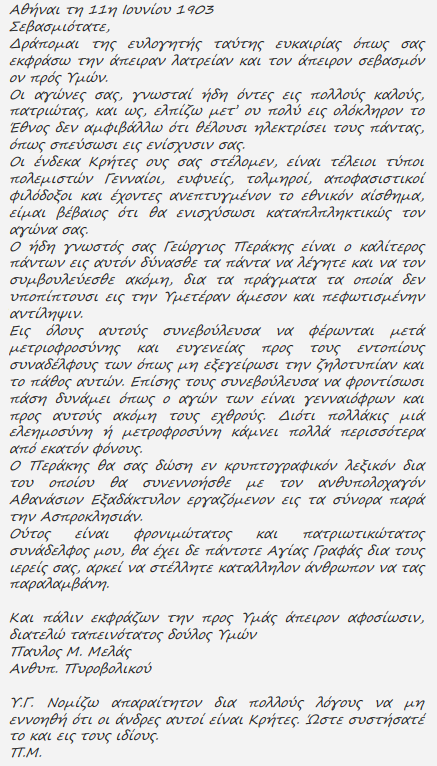 ΕΠΙΣΤΟΛΗ ΠΑΥΛΟΥ ΜΕΛΑ ΠΡΟΣ ΤΟΝ ΚΑΡΑΒΑΓΓΕΛΗ:![]() ![]() |